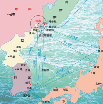 2010年,連接琿春至吉林省省會長春市的高速公路全線貫通,大大節省了兩地運輸時間。2011年,琿春市又將開放向前推進,不僅開通了經扎魯比諾至釜山陸海聯運航線,還通了從琿春經朝鮮元汀至羅津港直航至上海、寧波口岸的內貿貨物跨境運輸通道,為東北和東南沿海之間建立起一條新通道。