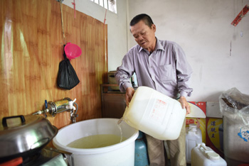 在潮陽區貴嶼鎮軍寮村,村民陳鎮人告訴記者,自今年清明節以來,他家里就沒有通過自來水。現在家里的飲用水都得去外面花高價錢購買,每噸水60塊錢,而在平時通自來水時,水價也不過4塊錢一噸,價格是平時的15倍之多。他說:“沒水喝還能怎么辦?再貴也得買啊!有時候下雨天還得出去買水,很辛苦。”