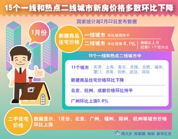 統(tǒng)計(jì)局?jǐn)?shù)據(jù)顯示,1月15個(gè)熱點(diǎn)城市新建住宅價(jià)格、11個(gè)城市新建商品住宅價(jià)格環(huán)比下降,降幅在0.1至0.5個(gè)百分點(diǎn)之間;3個(gè)城市環(huán)比持平;廣州市環(huán)比上漲0.6%,漲幅已連續(xù)4個(gè)月回落。