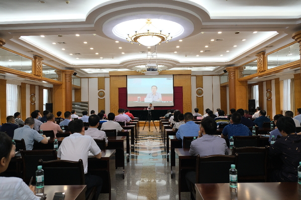 自治區(qū)國資委黨委書記、主任李杰云向全區(qū)國資國企干部職工作深化改革加強管理政策解讀。(自治區(qū)國資委供圖)