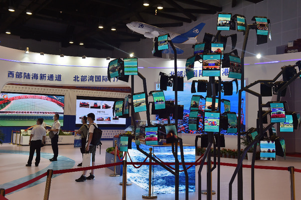 ????這是9月12日在廣西南寧國際會展中心拍攝的西部陸海新通道展區。新華社記者 劉嶺逸 攝