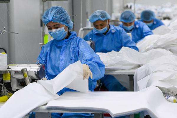 11日,在新疆墨玉縣產城融合園,新疆霸麗穆醫療器械有限公司的員工在生產防護服。地處塔克拉瑪干沙漠邊緣的新疆墨玉縣人均耕地少,產業基礎薄弱。近年來,墨玉縣堅持把招商引資作為產業發展的助推器,不斷優化產業結構,積極構建符合本地實際的現代產業體系,打造以襪業全產業鏈、電子全產業鏈為主的產城融合園,有效促進當地經濟發展,群眾增收致富。截至目前,墨玉縣產城融合園已入駐企業17家,涵蓋襪業、電子設備、服裝、鞋業、黃金加工等產業,帶動就業超過3000人。