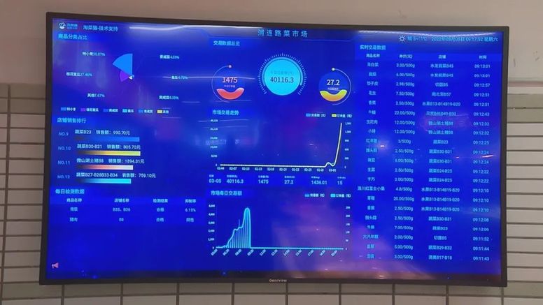 浦連菜場運營方負責人邵宇向記者介紹:“電子屏連接了整個市場的智慧秤,它的作用是綜合性的。秤上的數據實時反映了目前市場的交易情況,同時我們也掌握到每個攤位經營戶的經營情況,有一些銷售情況不太好的,我們會及時對他的業態進行調整,同時還指導他如何去改變,能更好地經營下去,這樣也能夠提升我們整個市場的營商環境。”