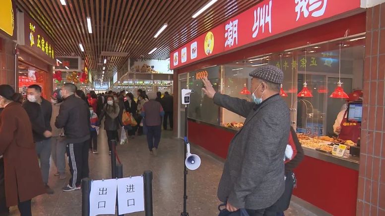上午9點,重裝開業的浦連菜場吸引了不少老主顧的腳步。為應對開業首日客流潮,菜場運營方加大防控力度,時刻關注場內人數,避免顧客扎堆,每個出入口還有專人測量顧客體溫、確認口罩佩戴情況。