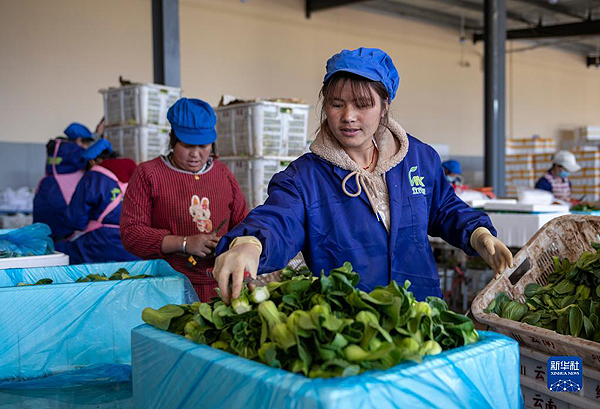 脫貧群眾在云南省曲靖市會澤縣一蔬菜冷鏈企業分揀蔬菜(2022年3月3日攝)。新華社記者 陳欣波 攝
