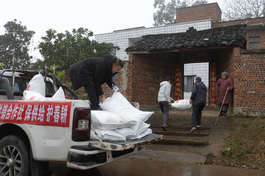 四川省瀘縣供銷合作社農資服務員把化肥和種子送到村民家中。資料照片
