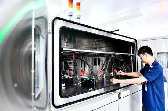 6月6日,在棗莊市國家鋰電池產品質量檢驗檢測中心,工作人員對鋰電池進行檢驗。 新華社記者 郭緒雷 攝