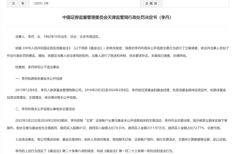 8月18日,天津證監(jiān)局公布行政處罰決定書稱,某基金公司基金經(jīng)理李丹,因“老鼠倉(cāng)”被罰60萬(wàn)元。