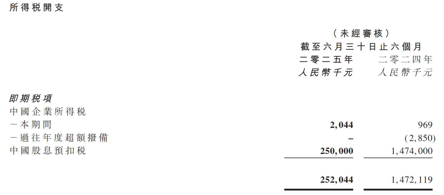 整體來看,盡管華晨中國今年上半年實現凈利增長,但核心因素卻是稅收開支同比減少所致。報告期內,公司所得稅開支為2.52億元,去年同期則為14.72億元,由此本期同比減少82.88%。減少的原因是華晨中國附屬公司2024年上半年支付了大額的股息預扣稅14.74億元,而今年上半年的股息預扣稅大幅降至2.50億元。