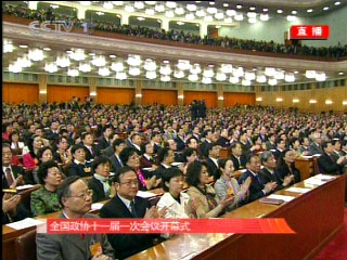 3月3日15時,全國政協十一屆一次會議在人民大會堂舉行開幕會。