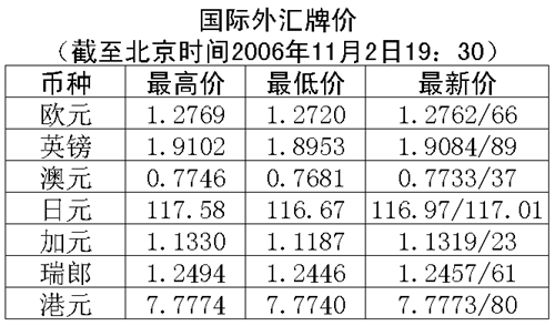 受美國房地產(chǎn)業(yè)和制造業(yè)降溫的影響,11月1日紐約外匯市場(chǎng)美元對(duì)其他西方主要貨幣的比價(jià)普遍下跌。