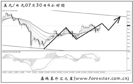 ▲美元兌日元目前匯價重新接近了通道上沿,阻力在96.50一帶。美日仍沒有擺脫持續了將近4個月的通道下跌走勢,預計直接沖破此阻力的希望不大,依舊以區間操作的思路為主。