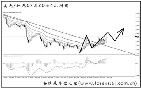 ▲美元兌加元一路創新低,此波反彈終于將包含背離點的下降趨勢線成功升破,為后市展開進一步的上漲掃清了障礙。首先要關注的是1.0920的阻力,升破后方可向1.1000上方挺進。 |