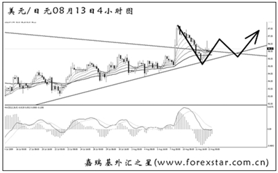 ▲美元兌加元匯價反彈上行,4小時圖道氏理論的最后一個顯著高點1.0935也被小幅升破,但中線跌勢沒有任何改變,操作上需尋找上方拋空的機會。