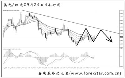 ▲美元兌加元4小時圖震蕩節奏混亂,入場操作有一定難度。但方向上仍以看空為主,重點關注趨勢線的阻力1.0850,預計美加將在此位置遇阻回落,再創新低。