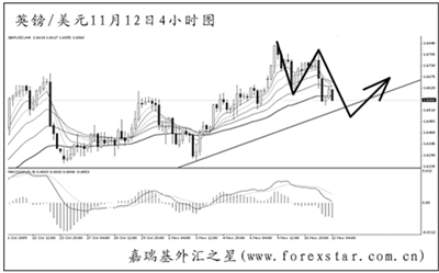 ▲英鎊兌美元短線走勢出現了一定的反復性,高位下落的力度較強。由于日線圖盤整的時間過長,需警惕英鎊筑頂成功的風險。4小時圖的重要強支撐在道氏理論點1.6250。關注圖中上升趨勢線的依托作用,預計英鎊將在小幅跌破此線后回歸漲勢。