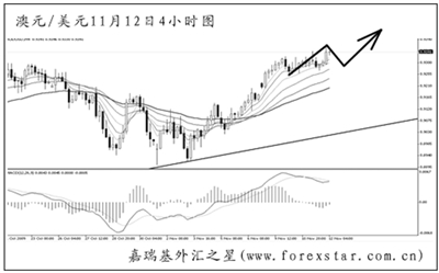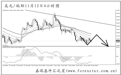 ▲美元兌瑞郎沿4小時圖的下降通道節節走低,尚未能跌破前方1.0030的強支撐。從小時圖上看,短線匯價的下跌動能持續減弱,但包含MACD底背離點的趨勢線仍然壓制匯價。預計美瑞下周展開一輪上行回調的概率較大,不過直接挑戰通道上沿并不可期。