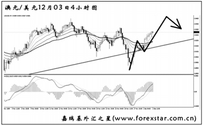 ▲澳元兌美元從10月下旬開始持續放慢了自己的上漲步伐,雖然日線圖發生了一連串的M A C
