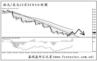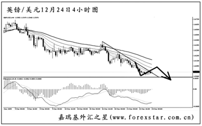 ▲歐元兌美元在跌破1.4625的支撐后加速下行,日線圖MACD顯示空頭動能強勁。短線匯價發生了一串的MACD底背離信號,目前剛剛把下降趨勢線升破。預計歐元調整過后仍將有一波上攻,但在圖中均線系統的壓制下再度轉為下行的概率很大。 |