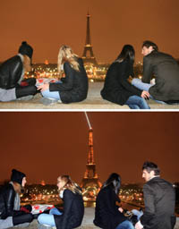 這張拼版照片顯示了2月1日在法國首都巴黎拍攝的埃菲爾鐵塔熄燈和燈光重新點亮的情景。當晚19點55分至20點,埃菲爾鐵塔上的2萬盞燈全部熄滅。在聯合國政府間氣候變化專門委員會召開會議之際,法國數十家環境組織聯合發起倡議,希望全體法國公民及機構當日晚關燈斷電5分鐘,借此向浪費能源行為宣戰,提醒公眾積極參與對抗氣候變暖的全球性行動。