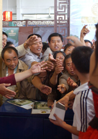 9月6日,呼和浩特市2007年秋季房地產(chǎn)展銷會(huì)在內(nèi)蒙古國際會(huì)展中心舉行,展出43家開發(fā)企業(yè)的50多個(gè)在建和已建成的中高低檔商品房、經(jīng)濟(jì)適用房項(xiàng)目以及一批二手房。據(jù)介紹,此次參展的項(xiàng)目價(jià)格大部分較春季有所上漲,但漲幅不大,基本保持在5%左右。圖為市民在呼和浩特秋季房地產(chǎn)展示會(huì)上爭搶一樓盤展位發(fā)放的貴賓卡。 |