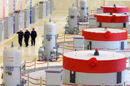西藏“十五”期間重點能源建設項目之一的拉薩河直孔水電站日前投產發電。該電站總投資13.37億元,裝機容量10萬千瓦,總庫容2.25億立方米,年均發電量4.07億千瓦時。直孔水電站的建成將在藏中電網發揮骨干電站作用。圖為三名技術人員檢查拉薩河直孔水電站四臺機組的運行情況。