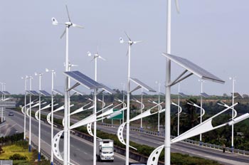 海南三亞市海棠灣的“風-光互補”節能路燈。新華社記者 趙穎全