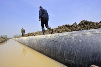 西氣東輸二線東段倒水河定向鉆穿越工程近日完工,這段工程位于湖北省武漢市新洲區境內。新華社記者 程敏