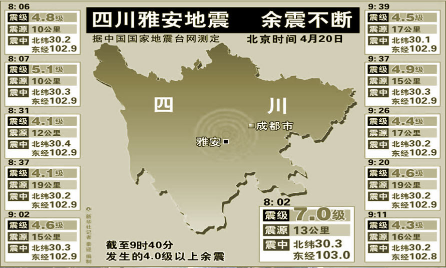 發生地點:四川省雅安市蘆山縣