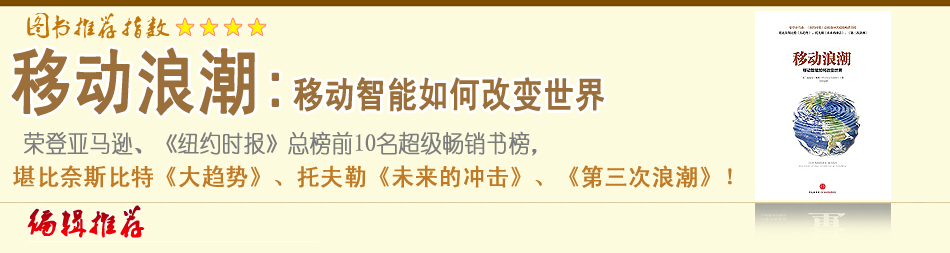 | 正讀《移動(dòng)浪潮》,巨大享受但也震撼!移動(dòng)計(jì)算技術(shù)將會(huì)影響我們這代人最具顛覆性的技術(shù),而它所推動(dòng)的革命正在飛速發(fā)展。信息革命在移動(dòng)智能的推動(dòng)下,將會(huì)在短短的幾十年里,改變我們的世界。 |