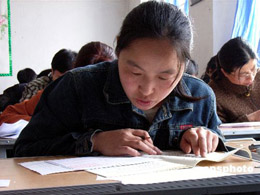 考生在今年職稱外語考場上作答。(本報資料照片)