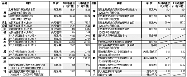當周,芝加哥交易所谷物期貨價格重拾升勢,小麥、玉米、大豆等期貨價格均創下近期新高。其中,明年3月交貨的小麥期貨合約當周收于每蒲式耳9.18美元,僅次于該種期貨9月28日創下的歷史最高價(9.6175美元/蒲式耳)。受小麥價格走勢影響,玉米期貨價格也創下5個多月來新高。 分析人士指出,市場對全球供給趨緊的擔心是推動小麥價格上漲的關鍵。由于加拿大4日調低了該國今年小麥產量的預估數據,而澳大利亞也稱,由于干旱天氣影響了作物產量,澳大利亞谷物庫存接近見底,市場因此加大了積極買進的力度。 當周,紐約市場油價除6日收于每桶90.23美元外,其余4個交易日的收盤價均在90美元之下。分析人士認為,國際原油市場出現由牛轉熊的心態,因此油價波動成為近期油市的主要特點。同時,多數分析師認為,下周國際油價有可能繼續回落,原因是美國成品油庫存的增加說明供不應求局面并未出現,而全球經濟的減速風險意味著未來需求將出現一定程度的下降。 由于在黃金和鉑的主產國——南非爆發了采礦工人大罷工,這兩種貴金屬價格均出現小幅上漲。不過,基本金屬價格則全線下跌,其中倫敦市場鉛期貨價從前一周的每噸3022美元下跌至2665美元。分析人士稱,這主要是因為市場對美國乃至全球經濟前景的擔憂加劇所致。 當周,倫敦和紐約市場的可可價格均大幅上升。推動其價格上漲的原因有二:一是主產國科特迪瓦的工人罷工引發了市場對供給的擔心,二是國際可可組織的最新報告稱,全球可可上一收獲季的供給缺口為24.2萬噸,而市場原先預期的供給缺口只有15.6萬噸。 由于全球最大的橡膠出產國——泰國近期天氣狀況轉好,橡膠價格開始下滑。分析人士表示,如果這種有利的天氣狀況能夠持續下去,橡膠價格仍有較大下行空間。