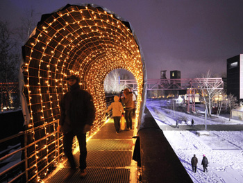 德國魯爾工業區變身“歐洲文化首都”。1月9日,在德國魯爾工業區埃森市,人們在2010年埃森“歐洲文化首都”活動開幕式上參觀工業區。新華社/法新 |