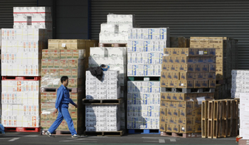 在日本東京的一個工業區,一名工人從一個倉庫前走過。新華社/路透 |
