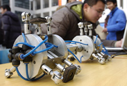 1月5日,一名學生通過電腦演示他和同學設計的“氣動機器人”。當日,南京東南大學舉行本科生科技創新成果展示會,共展出250多項科技創新成果。近年,東南大學推出“大學生科研訓練計劃”,學校設立專項基金,制定創新學分認定等政策鼓勵學生創新,從2004年至今,全校本科生從事的各類科技創新項目約達3000項。(本報資料照片)