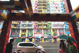 重慶涂鴉藝術一條街于今年6月初正式亮相。圖為幾位市民正從街頭經過。周衡義