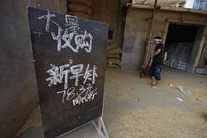 | 位于洞庭湖糧食主產區的益陽市赫山區蘭溪米市是全國十大米市之一,號稱“湖南米市晴雨表”。圖為掛出的早稻收購價牌子。 |