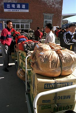 | 吉林省琿春市的邊境貿易紅紅火火,各個口岸一派繁忙景象。這是在琿春口岸等待邊檢的韓國客商。新華社記者 徐家軍