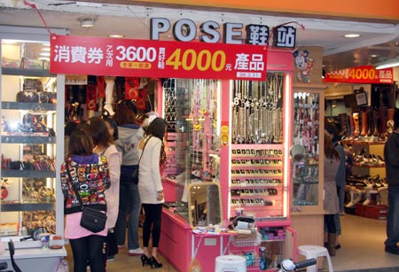 1月18日,臺北鬧市西門的一家商鋪打出優惠標語,吸引顧客用消費券消費。新華社記者:李凱攝 | 據新華社臺北1月18日電