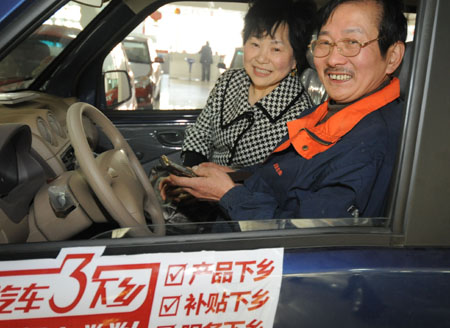 為配合國家“汽車下鄉”實施細則出臺,黑龍江省于3月底在哈爾濱市舉辦第四屆百姓購車周活動。活動一拉開序幕,各地前來購車的農民就像潮水一樣涌上來了。 長安昊業汽車經銷有限公司是黑龍江省省級代理商,銷售經理曹東文告訴記者,眼下公司60%的客戶都是農民。現在農民敢花錢了,有了國家政策,可買可不買的,都被爭取過來了。一個月下來,他們店汽車銷售量達490多臺,其中近300臺是農民買走的。