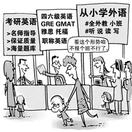 也許有人會(huì)問(wèn),目前世界范圍內(nèi)不是也出現(xiàn)了漢語(yǔ)熱嗎?的確,全球?qū)W漢語(yǔ)的老外已超過(guò)了3000萬(wàn)。然而,這些人大多數(shù)只把學(xué)漢語(yǔ)當(dāng)作了解中國(guó)、經(jīng)貿(mào)交往的一種工具而已。貼在巴黎街頭的一則醒目的海報(bào)這樣寫著:“學(xué)漢語(yǔ)吧,那意味著你未來(lái)幾十年內(nèi)的機(jī)會(huì)和財(cái)富。”你瞧,人家是以“務(wù)實(shí)”為標(biāo)識(shí)的。反觀吾國(guó)吾土,從社會(huì)到個(gè)人都被淹沒(méi)在英語(yǔ)的洪流中了。拿學(xué)位,評(píng)職稱,選人才,英語(yǔ)似乎成了首選的硬條件。一方面是母語(yǔ)的被忽視和玷污,另一方面則是英語(yǔ)的“一統(tǒng)天下”。英語(yǔ)霸權(quán)時(shí)代的漢語(yǔ)命運(yùn)遭遇了尷尬。