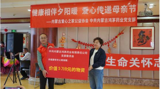 近日,內蒙古鴻茅藥業有限責任公司聯合內蒙古愛心之家公益協會,走進內蒙古福康老年公寓,以“健康相伴夕陽暖 愛心傳遞母親節”為主題,為百余位高齡老人送上價值5萬余元的健康物資以及鮮花、定制蛋糕。作為健康中國公益行動的重要實踐,同時也是鴻茅“骨健康關愛計劃”的深化落地,此次活動通過健康科普與服務、中醫藥文化傳承及精神關懷,踐行關愛老年人群、風濕骨病人群和慢性病人群的公益使命,助力全民健康理念落地生根。