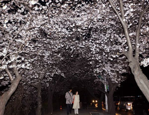 提起賞櫻,人們總會想到日本。其實,櫻花絕非日本獨有,在韓國,櫻花的數量也多得令人嘆為觀止。每年3月15日至4月15日,是日本的櫻花節,而韓國的櫻花開放時節稍晚,大約在4月初,卻是春天芳菲的主角。 據說,日本的櫻花是從韓國傳過去的。在東渡日本之前,韓國櫻花的數量不多。但自從櫻花被日本定為國花,且因為30年的被侵略歷史,日本人的大量種植才形成了韓國櫻花遍地的景象。如今,漫步在首爾,到處可見大片櫻花盛開,山野、街邊、公園,白色的櫻花不嬌艷卻高雅出塵,小而細密,不知不覺間將整個城市裝扮成粉嫩的夢幻世界。櫻花的生命短暫,花期只有七天左右,也因此而格外珍貴。要抓住這稍縱即逝的美麗,就必須珍惜機會。 在首爾,不到汝矣島,就不算賞了櫻花。汝矣島櫻花路——輪中路,位于首爾市永登浦區汝矣島——這一首爾和韓國的金融中心,交通便利,充滿現代氣息。附近就是都市化象征的首爾代表性建筑——63大廈。然而,就是在這代表著現代都市發達經濟的地方,卻有一條洋溢著浪漫、美好氛圍的“櫻花大道”。這條大道長達5.7公里,兩邊種植著1400多株櫻花,花開時枝繁葉茂,在空中籠成一條長長的圓形隧道,極其壯觀華麗。每年4月櫻花盛開之時,這里都會舉行“櫻花節”。節日期間,車輛禁行,平日里常見的車水馬龍、喧嘩嘈雜消失了,取而代之的是熱鬧的歡樂人群和各式各樣的慶典節目。每天從早晨9點開始,持續開展各種慶祝活動。 白天,走在繁茂的“櫻花隧道”里,你可以一邊觀賞櫻花飄落,一邊欣賞各種民俗表演——個性化的藝術公演、有創意的手工藝品展,一邊品嘗各種美味的小吃。看著身邊小孩子們歡呼雀躍地游戲,和朋友、親人悠閑地散步,享受春日的暖陽,真是愜意無比。 過了晚上6點半,櫻花大道華燈燃起,五彩繽紛,將整條街渲染成神秘的童話世界,又是一番截然不同的情景。此時,和戀人一起,牽手漫步花叢之間,竊竊私語,更是浪漫得無可復加。 去櫻花大道很方便,從汝矣島國會議事堂出來,就是櫻花大道的入口。首先映入眼簾的,是門口極其鮮艷的大花盆,一株株五彩的春花開得正歡,爭奇斗艷,紅色和橙色的郁金香、姹紫嫣紅的杜鵑、黃色的百合……那是一年一度的“春花展”。游人們爭相與花留影,女孩子們穿著漂亮的短裙,與花比美,堪稱一景。不過別急,這只是“拋磚引玉”。走過花盆,可見人行道上整整一排富有個性的手工藝品,都是用廢品制成的。易拉罐、塑料瓶、廢舊燈泡、玻璃瓶……一無是處的垃圾竟然搖身一變成了藝術品,這讓人們在贊嘆藝術家們的巧手之余,也不得不感嘆韓國人民的環保意識。 沿著道路往下走,你便置身于繁茂的櫻花隧道了。和起初沖擊眼球的艷麗春花形成鮮明對比的是,白色的櫻花不張揚、不高調,只是自顧自地綻放,成千上萬朵淡雅的櫻花密密麻麻、相互簇擁,如云如雪,迎向天空,一下子隔離開了喧囂的都市,構筑出一個“世外桃源”來。置身其間,任誰都會立即拋卻煩惱,感受到難得的平和心境。一路走去,街頭的各種公演,不喧嘩,只是給安靜的鮮花世界增添了不少情趣。路邊,還有不少藝人在作畫,你可以停下來,感受一番自己入畫、入景的情致。 到了晚上,位于漢江邊的櫻花大道,更加美得如夢如幻。首爾的夜景本就輝煌燦爛,有“小香港”之稱,而櫻花點綴下的汝矣島,既不缺乏都市叢林的星光點點,又有著都市里難得一見的自然之夢幻。原本粉嫩的白色櫻花,在燈光的照耀下不斷變幻色彩,艷紅、亮黃、嫩綠……慢慢踱步其間,恍惚間,你會仿佛進入了夢游般的奇幻狀態,亦真亦幻,閉上眼睛,你似乎可以感受到無數小精靈在你身邊飛舞,引領你進入神奇世界……無數戀人們在櫻花樹下親密相擁,漢江在一邊靜靜地流淌……對他們來說,此刻,世界只剩下兩人——我和你。 來首爾賞櫻花,汝矣島的“櫻花隧道”,一定會帶給你非同一般的美好回憶。