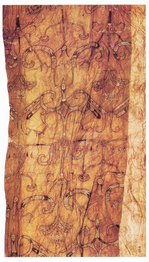 | 戰國淺黃刺繡飛鳳花卉紋殘片 |
