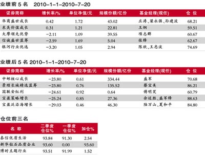 單只基金中,領(lǐng)銜減倉的有泰達(dá)宏利成長、華安中小盤、信誠盛世藍(lán)籌和諾安成長等。業(yè)績證明,有些基金通過早期的迅速減倉,使其受市場下跌的影響相對較小,但也有部分基金跟風(fēng)亂減,踏錯節(jié)奏。根據(jù)WIND數(shù)據(jù),截至7月20日,今年以來信誠盛世藍(lán)籌凈值增長率為-2.59%排名第四,諾安成長下跌6.34%排名12,泰達(dá)宏利成長排名22,而華安中小盤則大幅下跌16.65%,排名128。