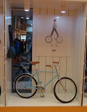 Moss不得不掩住走光部位草草回家。可見,買二手服裝這件事雖然聽起來很潮,但確實需要眼光與手段兼具。比如,我的一個朋友就曾經在上海最著名的安順路二手市場以60塊人民幣的價錢買到過看起來又貴又具品質感,而且版型極其周正的寶藍色羊絨大衣,完全是1960年代的歐洲范兒;而換本人慕名過去,只覺得滿市場的服裝鞋子都可以直接打包支援災區,要么是鐘點工阿姨合適的服裝,要么就是粗制濫造的仿冒品,哪里有一點點摩登的影子。當然這涉及到另外一個話題,復古風玩不好就有直接變成鐘點工阿姨style的風險。 說回自行車,無論如何,永久C算是本土自行車品牌的一次重新嘗試,值得鼓勵。把自行車作為一種低碳生活方式來鼓吹,雖然算得上“政治正確”,但恐怕對時髦青年們沒什么太大的吸引力。比如,雖然騎自行車或者乘坐公共交通工具都是低碳生活方式的體現,但比如現在,40攝氏度的惡劣天氣里,擁擠的公共交通,以及市區里逃不掉的汽車尾氣,恐怕很難令人們以“低碳”為理由而降低生活質量。但是,若為了有型又特別,而且搭上了復古時髦的邊兒,那一輛設計精致的自行車或許很有希望成為一股風潮。不過,據說平均要超過千元的售價不知會否讓永久C落得個叫好不叫座的結果。