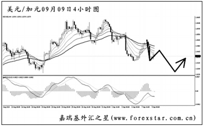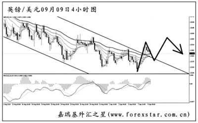 ▲英鎊兌美元發力將下降通道上沿小幅升破,圖中一連串的MACD底背離信號發揮了一定的效果。目前匯價有向下回抽通道上沿的欲望,然后繼續走出一波反彈,但反彈很難升破1.5600一線阻力。后市英鎊有再度遇阻下跌的風險,若做多只屬于短線單性質。