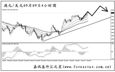 ▲澳元兌美元上漲斜率加大,目前已經接近了上月初的高點0.9220阻力,若成功升破,后市將挑戰去年11月高點0.9400一線。短線澳元的上漲勢頭保持良好,圖中均線系統多頭排列,升破0.9220后可繼續采取做多策略,但在接近0.9400時建議先行出場或減倉。