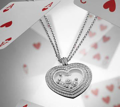 艷麗的快樂(lè)鉆石吊墜鑲飾了三行鉆石,專(zhuān)為盛大的場(chǎng)合而設(shè)計(jì),貼靠在雅致的低胸衣領(lǐng)上閃耀著耀目光芒。燦爛的鉆石隨著滿(mǎn)載愛(ài)意的心臟一起跳動(dòng)。