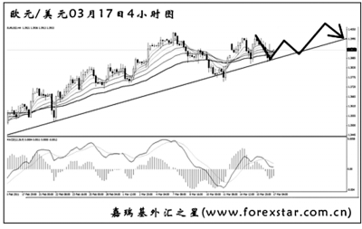 ▲澳元兌美元未能創出1.0255的新高,短線急速下行,階段性的頂部基本構筑成功。從圖中看,澳元此波下跌的力度較強,預計匯價再度轉為上漲的希望不大。日線圖道氏理論顯著低點的支撐在0.9535,在跌破此價格前,只可以小倉做空澳元,待攻破此位置后再行加倉不遲。